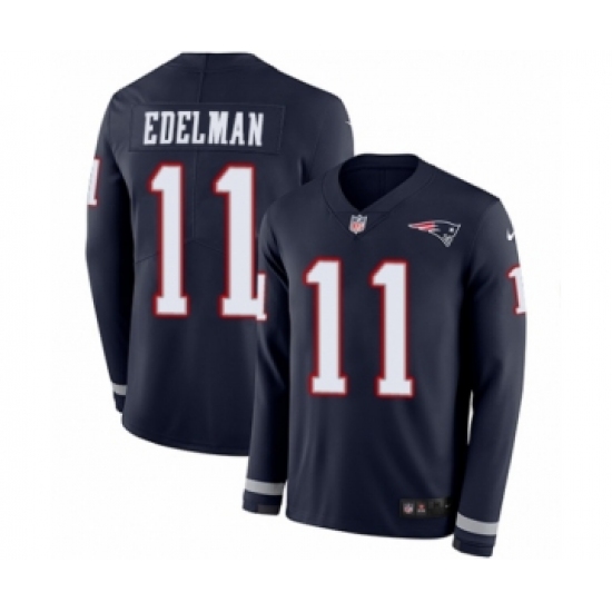 Men's Nike New England Patriots #11 Julian Edelman Limited Navy Blue Therma Long Sleeve NFL Jersey