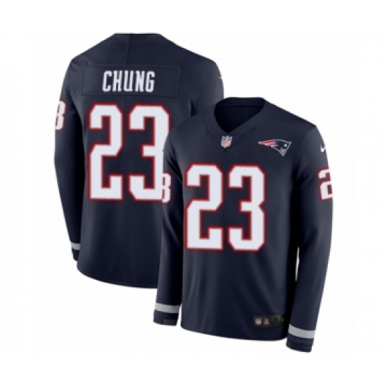 Men's Nike New England Patriots #23 Patrick Chung Limited Navy Blue Therma Long Sleeve NFL Jersey