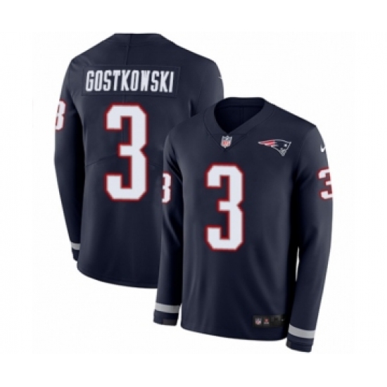 >Men's Nike New England Patriots #3 Stephen Gostkowski Limited Navy Blue Therma Long Sleeve NFL Jersey