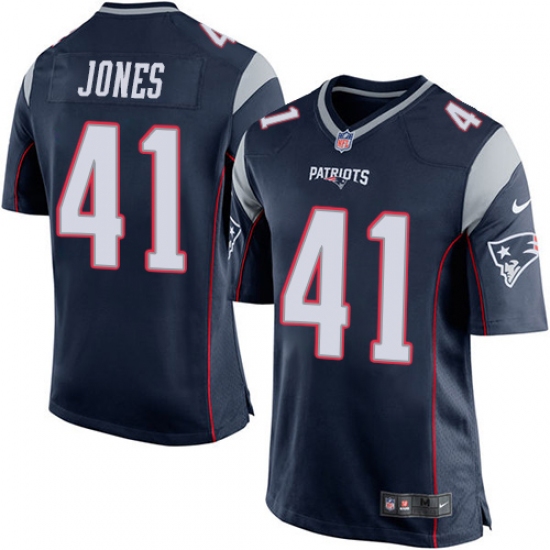 Men's Nike New England Patriots #41 Cyrus Jones Game Navy Blue Team Color NFL Jersey