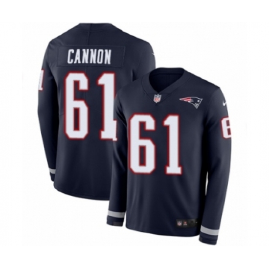 Men's Nike New England Patriots #61 Marcus Cannon Limited Navy Blue Therma Long Sleeve NFL Jersey