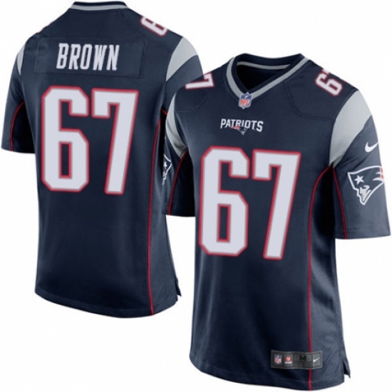 Men's Nike New England Patriots #67 Trent Brown Game Navy Blue Team Color NFL Jersey