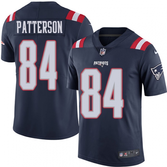>Men's Nike New England Patriots #84 Cordarrelle Patterson Limited Navy Blue Rush Vapor Untouchable NFL Jersey