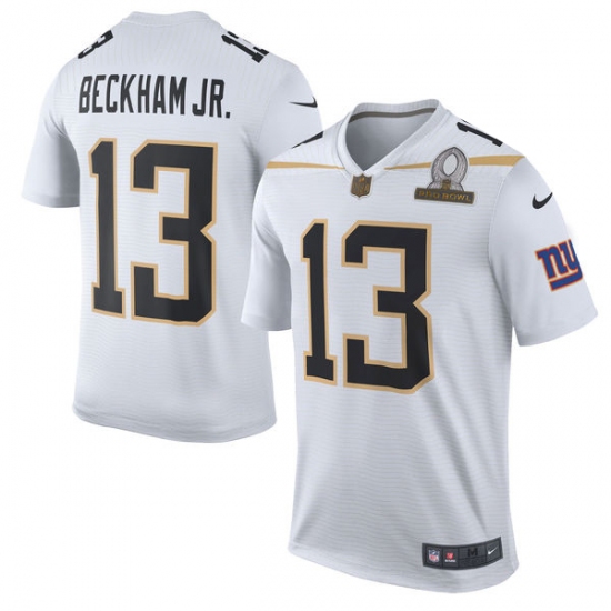 Men's Nike New York Giants #13 Odell Beckham Jr Elite White Team Rice 2016 Pro Bowl NFL Jersey