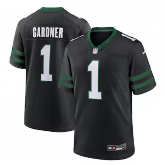Men's Nike New York Jets #1 Ahmad Sauce Gardner Black 2023 F.U.S.E. Vapor Limited Throwback Stitched Football Jersey
