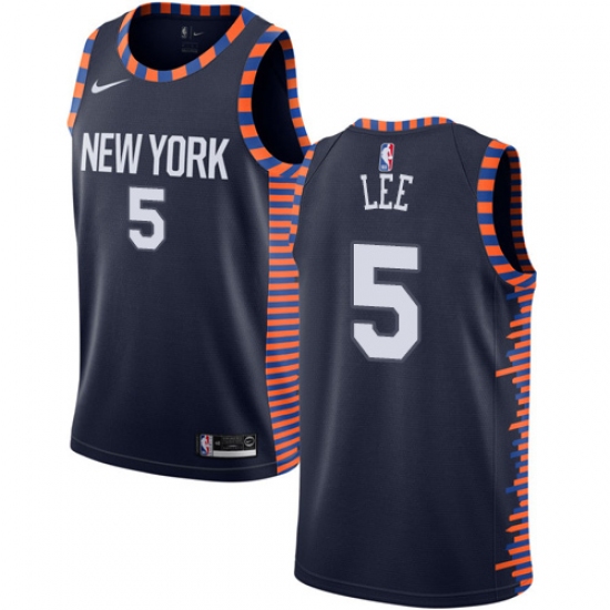 >Men's Nike New York Knicks #5 Courtney Lee Swingman Navy Blue NBA Jersey - 2018 19 City Edition