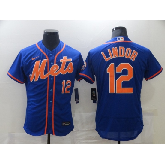 Men's Nike New York Mets #12 Francisco Lindor Blue Elite Jersey