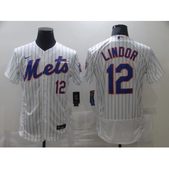 >Men's Nike New York Mets #12 Francisco Lindor White Elite Jersey