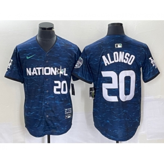 Men's Nike New York Mets #20 Pete Alonso Number Royal 2023 All Star Cool Base Stitched Baseball Jersey
