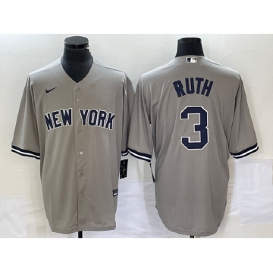 Men's Nike New York Yankees #3 Babe Ruth Gray Cooperstown Collection Road Stitched Baseball Jersey