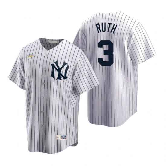 Men's Nike New York Yankees #3 Babe Ruth White Cooperstown Collection Home Stitched Baseball Jersey