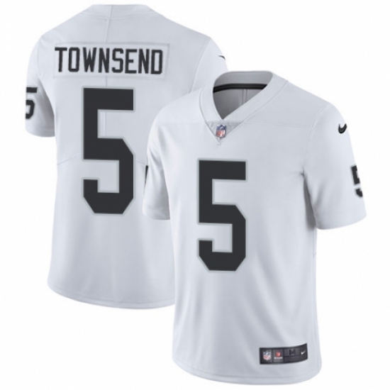 >Men's Nike Oakland Raiders #5 Johnny Townsend White Vapor Untouchable Limited Player NFL Jersey