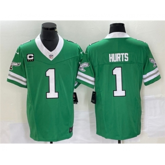>Men's Nike Philadelphia Eagles #1 Jalen Hurts Green 2023 F.U.S.E. Vapor Untouchable C Stitched Football Jerseys