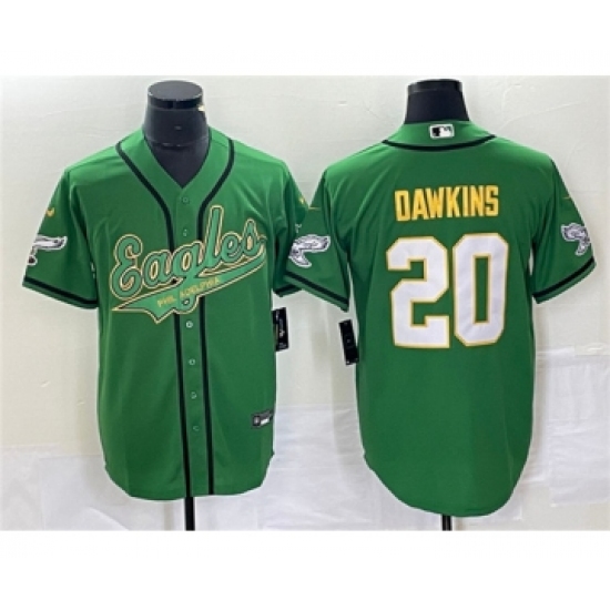 Men's Nike Philadelphia Eagles #20 Brian Dawkins Green Gold Cool Base Baseball Stitched Jersey
