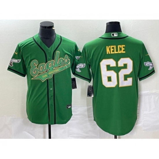 Men's Nike Philadelphia Eagles #62 Jason Kelce Green Gold Cool Base Stitched Baseball Jersey