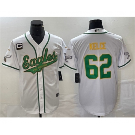 Men's Nike Philadelphia Eagles #62 Jason Kelce White Gold C Cool Base Baseball Stitched Jersey