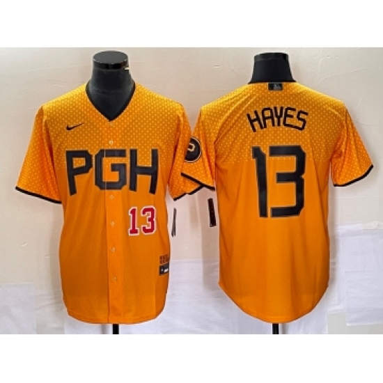 Men's Nike Pittsburgh Pirates #13 KeBryan Hayes Gold 2023 City Connect Stitched Jersey 1