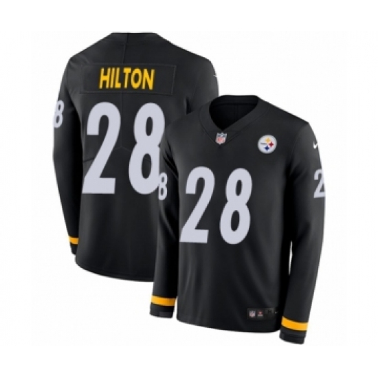 >Men's Nike Pittsburgh Steelers #28 Mike Hilton Limited Black Therma Long Sleeve NFL Jersey