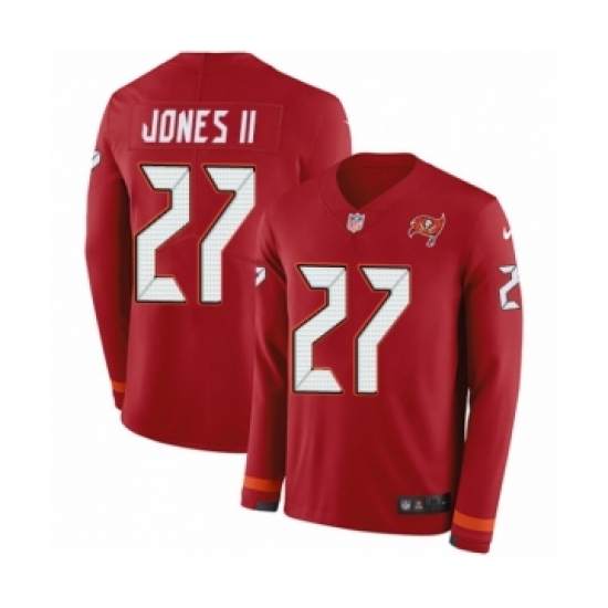 >Men's Nike Tampa Bay Buccaneers #27 Ronald Jones II Limited Red Therma Long Sleeve NFL Jersey