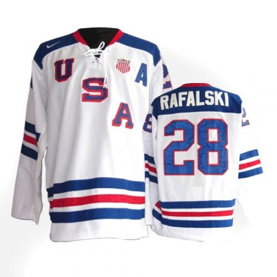 Men's Nike Team USA #28 Brian Rafalski Premier White 1960 Throwback Olympic Hockey Jersey