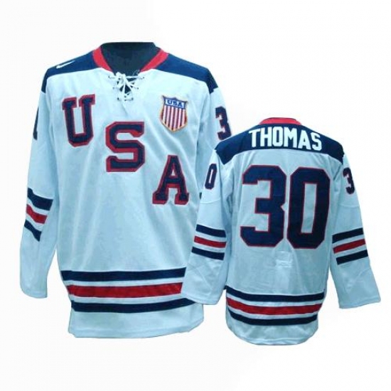 Men's Nike Team USA #30 Tim Thomas Authentic White 1960 Throwback Olympic Hockey Jersey