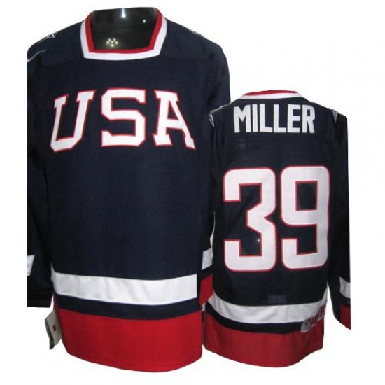 Men's Nike Team USA #39 Ryan Miller Premier Navy Blue 2010 Olympic Hockey Jersey