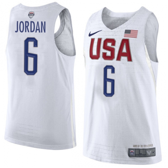 Men's Nike Team USA #6 DeAndre Jordan Swingman White 2016 Olympic Basketball Jersey