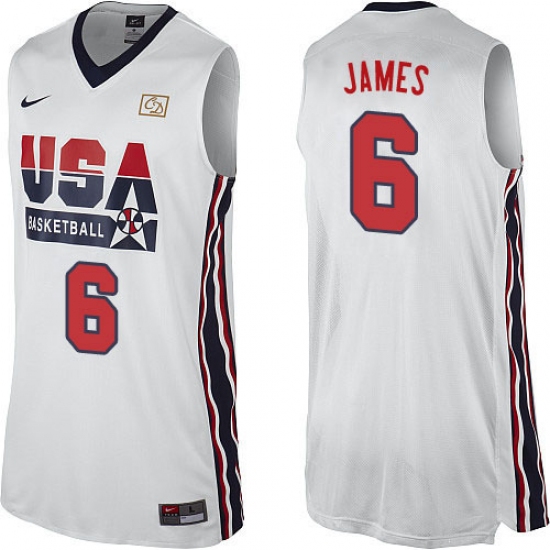 Home>NBA>Team USA>LeBron James>Men's Nike Team USA #6 LeBron James Swingman White 2012 Olympic Retro Basketball Jersey