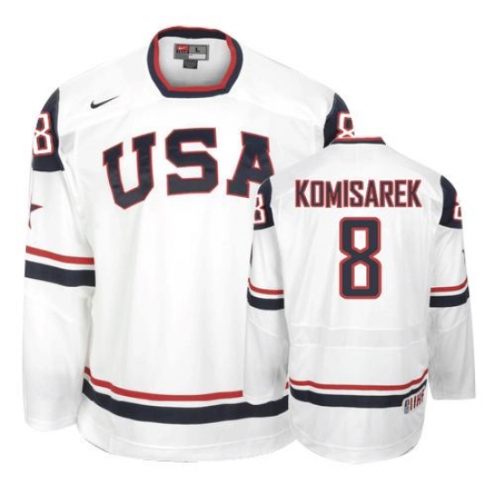 Men's Nike Team USA #8 Mike Komisarek Authentic White 2010 Olympic Hockey Jersey