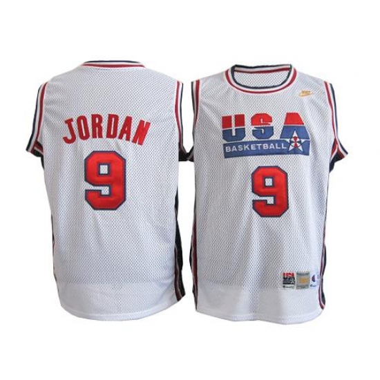 Men's Nike Team USA #9 Michael Jordan Authentic White Throwback Basketball Jersey