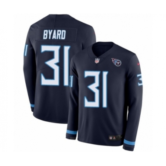 >Men's Nike Tennessee Titans #31 Kevin Byard Limited Navy Blue Therma Long Sleeve NFL Jersey