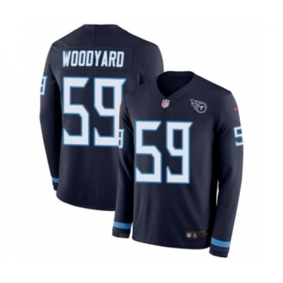 Men's Nike Tennessee Titans #59 Wesley Woodyard Limited Navy Blue Therma Long Sleeve NFL Jersey