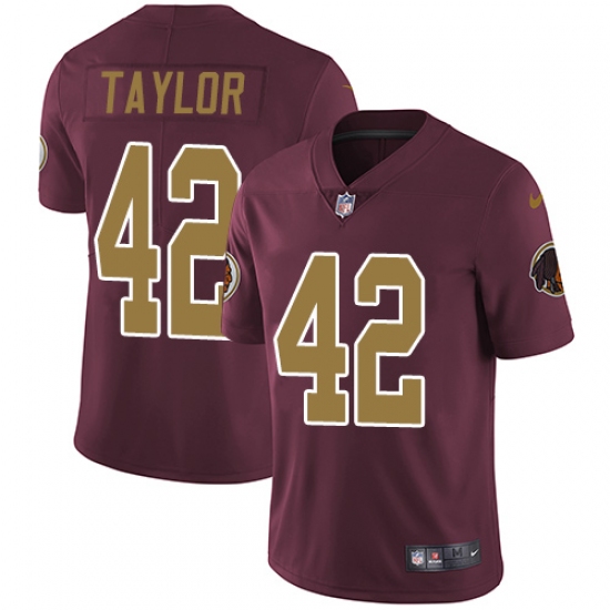 Men's Nike Washington Redskins #42 Charley Taylor Burgundy Red/Gold Number Alternate 80TH Anniversary Vapor Untouchable Limited Player NFL Jersey