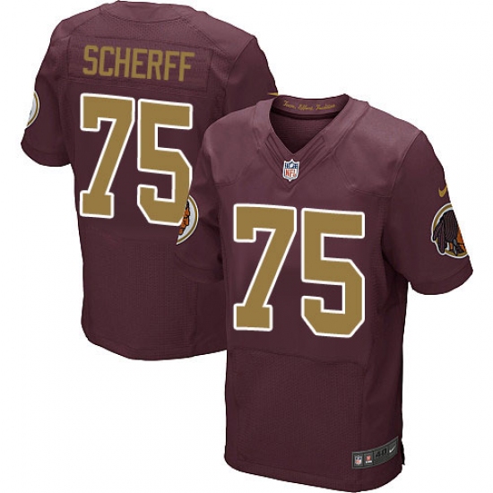 Home>NFL>Washington Redskins>Brandon Scherff>Men's Nike Washington Redskins #75 Brandon Scherff Elite Burgundy Red/Gold Number Alternate 80TH Anniversary NFL Jersey
