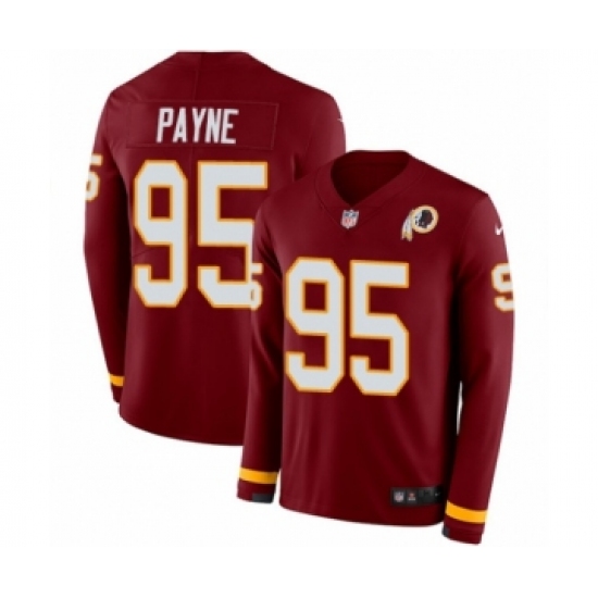 >Men's Nike Washington Redskins #95 Da'Ron Payne Limited Burgundy Therma Long Sleeve NFL Jersey