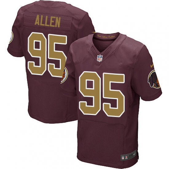 Home>NFL>Washington Redskins>Jonathan Allen>Men's Nike Washington Redskins #95 Jonathan Allen Elite Burgundy Red/Gold Number Alternate 80TH Anniversary NFL Jersey