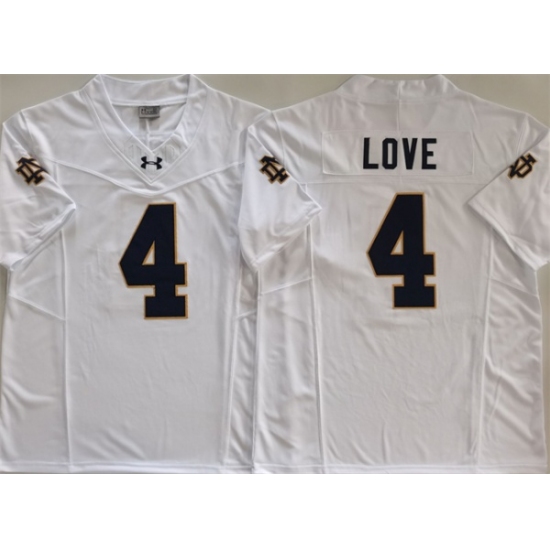 >Men's Notre Dame Fighting Irish #4 Jeremiyah Love White 2024 F.U.S.E. Limited Stitched Jersey