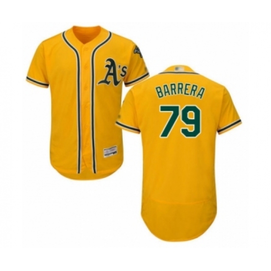 >Men's Oakland Athletics #79 Luis Barrera Gold Alternate Flex Base Authentic Collection Baseball Player Jersey