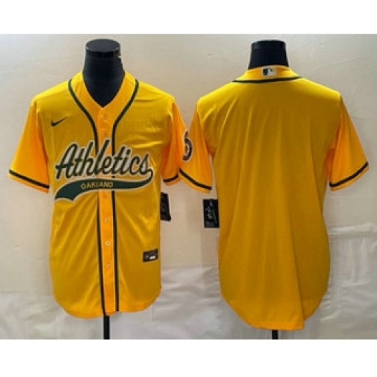 Men's Oakland Athletics Blank Yellow Cool Base Stitched Baseball Jersey