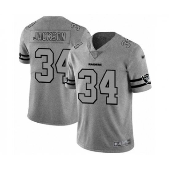 Men's Oakland Raiders #34 Bo Jackson Gray Team Logo Gridiron Limited Player Football Jersey