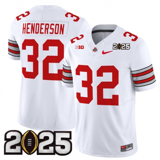 Men's Ohio State Buckeyes #32 TreVeyon Henderson White 2025 CFP Final Patch F.U.S.E. Vapor Limited Stitched Football Jersey