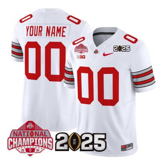 Men's Ohio State Buckeyes Active Player Custom White 2025 CFP Final With National Champions Patch F.U.S.E. Vapor Limited Stitched Jersey