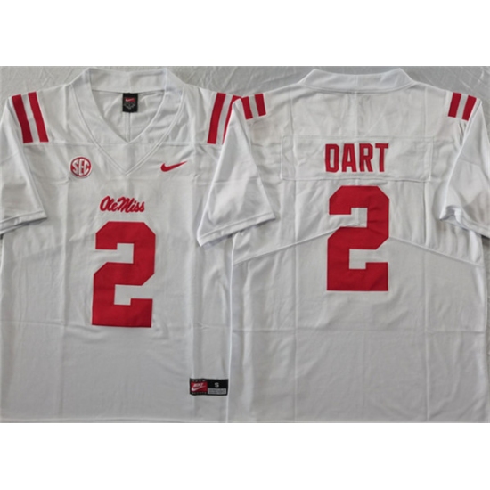 Men's Ole Miss Rebels #2 Jaxson Dart White Stitched jersey