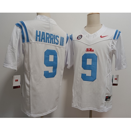 Men's Ole Miss Rebels #9 Tre Harris III White FUSE College Stitched Jersey