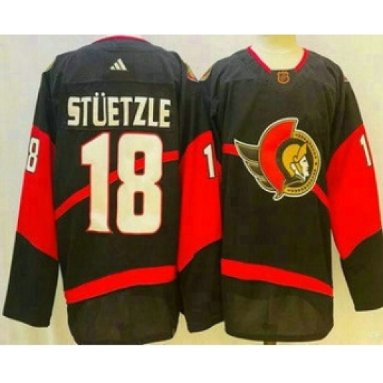 >Men's Ottawa Senators #18 Tim Stutzle Black 2022 Reverse Retro Authentic Jersey