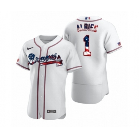 Men's Ozzie Albies #1 Atlanta Braves White 2020 Stars & Stripes 4th of July Jersey