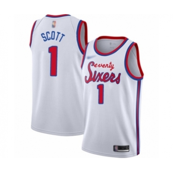 Men's Philadelphia 76ers #1 Mike Scott Authentic White Hardwood Classics Basketball Jersey