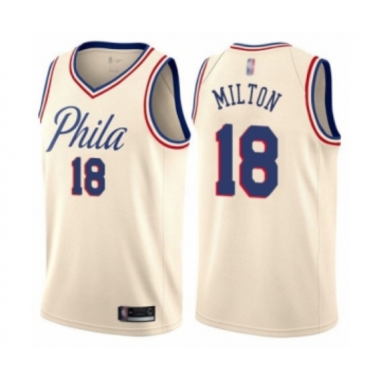 >Men's Philadelphia 76ers #18 Shake Milton Authentic Cream Basketball Jersey - City Edition