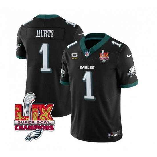 Men's Philadelphia Eagles #1 Jalen Hurts Black 2025 Eagles Logo Super Bowl LIX New F.U.S.E. Vapor Untouchable Limited Football Stitched Jersey
