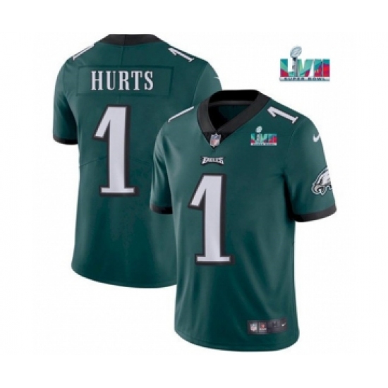 >Men's Philadelphia Eagles #1 Jalen Hurts Green Super Bowl LVII Patch Vapor Untouchable Limited Stitched Jersey